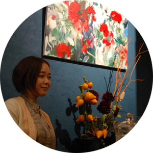 I paint scenes of ordinary flowers in bloom, selectively bringing out their forms, colors, and the play of light and shadow with rhythm.
